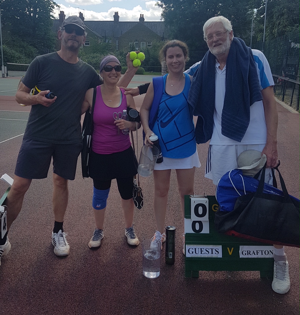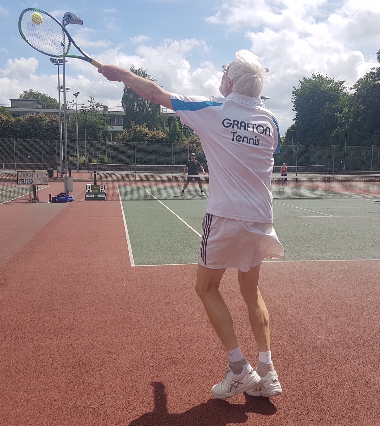 Murray & Sarah then lost focus to allow Mark & Sally to level 6-3 after which Grafton looked good going up 7-2 in the tiebreak only to be pipped 11-9 having squandered a match point when Murray, who should know better having wielded a racket for 64 years, broke the ‘if in doubt hit it’ rule!